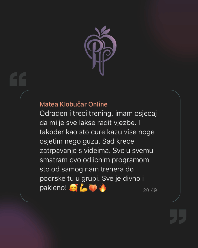 Svaka vježba u videu ima jasne demonstracije i objašnjenja, a u grupi / podršci možeš uvijek postaviti pitanje i dobiti savjet.